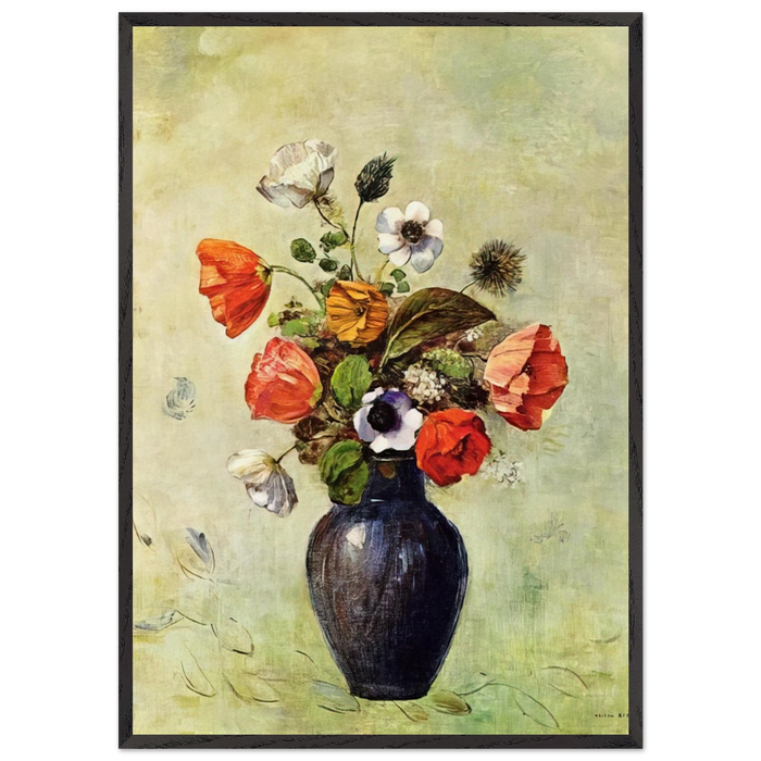 ANEMONES AND POPPIES IN A VASE - Odilon Redon Framed Art Print – Black Wooden Frame