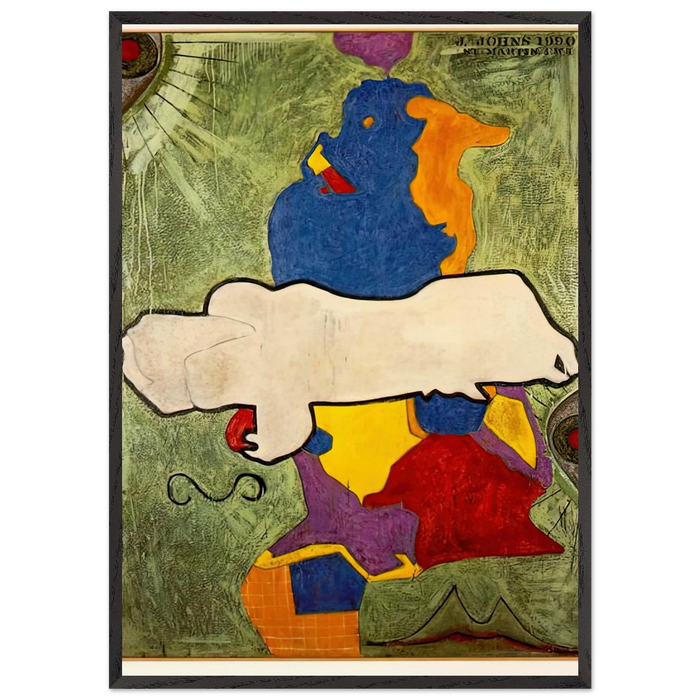 Own a definitive piece of 20th-century art history with this framed art print of Jasper Johns' GREEN ANGEL. This 70x100 cm / 28x40 inches reproduction captures the enigmatic power of Johns' iconic work, where familiar symbols are transformed into profound meditations on perception and memory. As a leading figure in the Neo-Dada and Pop Art movements, Johns revolutionized contemporary art by elevating everyday objects—like flags, targets, and numbers—into subjects of deep contemplation. GREEN ANGEL continues this legacy, inviting viewers into a world of layered meaning and visual intrigue.