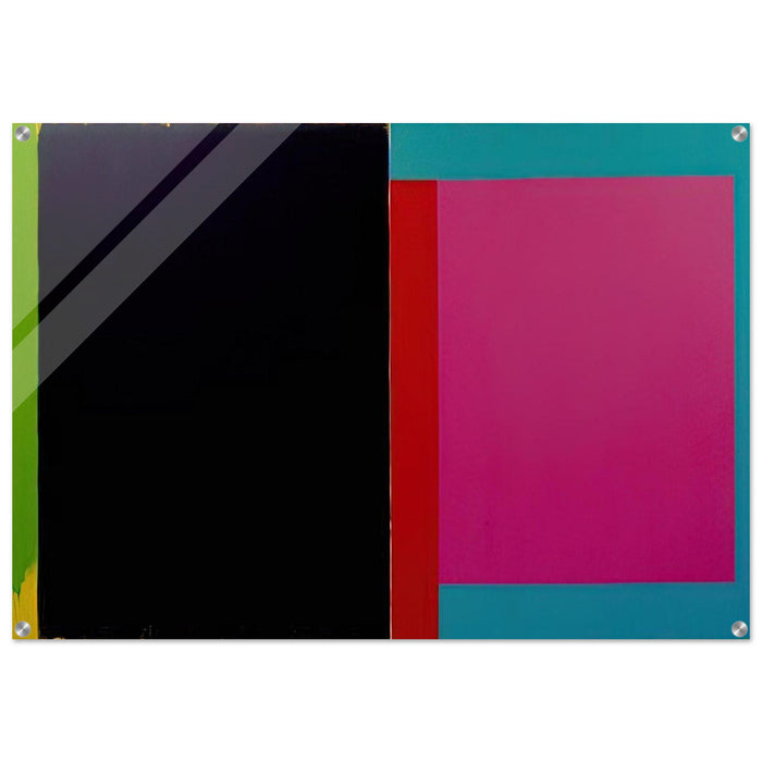 Immerse yourself in the bold, geometric abstraction of Doug Ohlson's New Mexico (1985), now available as an exclusive museum-quality acrylic print from RedKalion. This iconic work captures the artist's fascination with the stark landscapes and luminous light of the American Southwest, translating them into a dynamic composition of vibrant color fields and precise forms. Ohlson, a key figure in post-painterly abstraction, masterfully balances hard-edge painting techniques with a profound sense of spatial depth, inviting contemplation and energizing any environment.