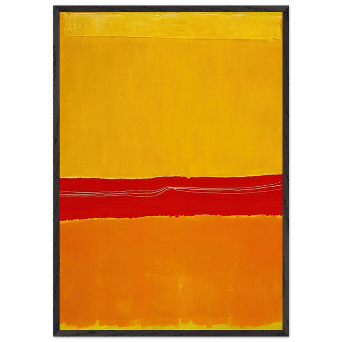 RedKalion presents this archival masterpiece as a ready-to-hang framed art print, meticulously crafted to honor Rothko’s vision. The print measures 70x100 cm / 28x40 inches, rendered on 250 gsm (110 lb) matte, uncoated archival paper with a natural white finish that ensures color fidelity and longevity. It is protected by shatterproof plexiglass and framed in a black wooden frame made from responsibly sourced oak and ash wood, with a substantial 20mm (0.79") thickness for a bold, gallery-worthy presence.