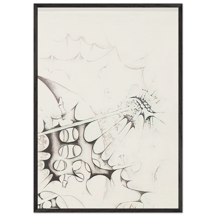 STUDY FOR AN UNTITLED PRINT WHITE ON BLACK 1982 - Lee Bontecou Framed Art Print – Black Wooden Frame