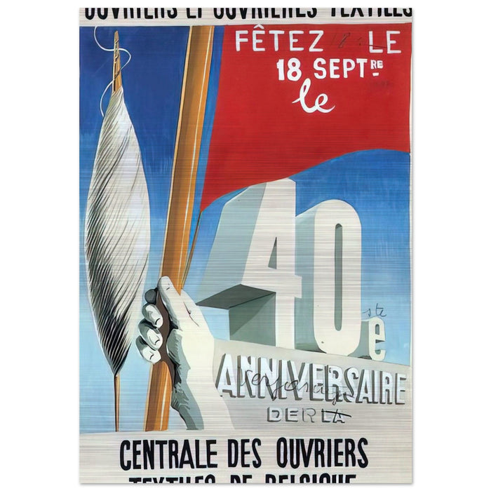 PROJECT OF POSTER THE CENTER OF TEXTILE WORKERS IN BELGIUM CELEBRATION ON 18TH SEPTEMBER 1938 - Rene Magritte Brushed Aluminum Print - 70x100 cm / 28x40 inches | Rene Magritte Aluminum Print | Rene Magritte Prints