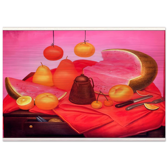 STILL LIFE WITH WATERMELON 1 - Fernando Botero Brushed Aluminum Print - 70x100 cm / 28x40 inches | Fernando Botero Aluminum Print | Fernando Botero Prints