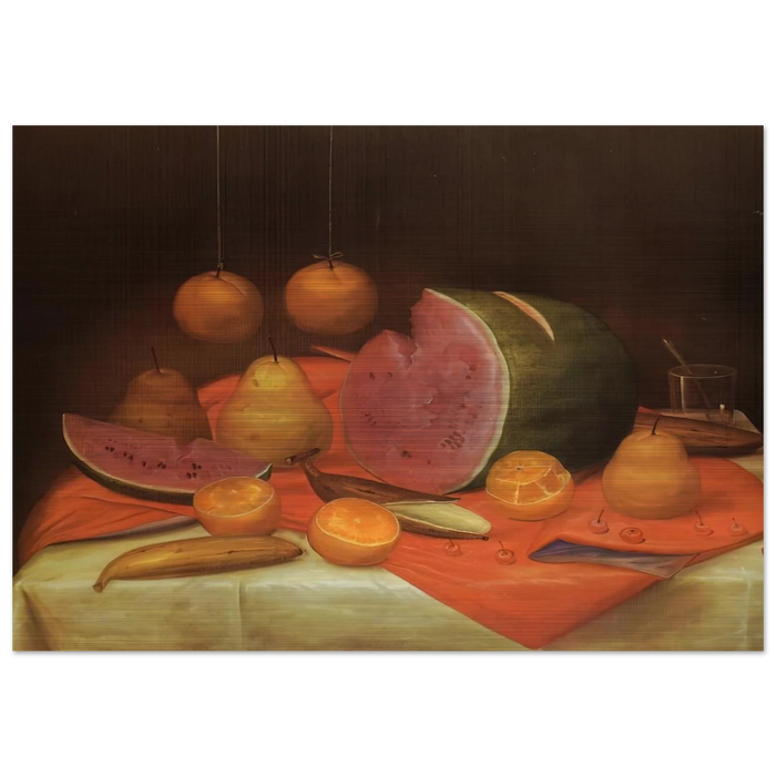 STILL LIFE WITH WATERMELON - Fernando Botero Brushed Aluminum Print - 70x100 cm / 28x40 inches | Fernando Botero Aluminum Print | Fernando Botero Prints