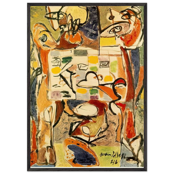 FIGURES IN A LANDSCAPE - Jackson Pollock Framed Art Print – Black Wooden Frame