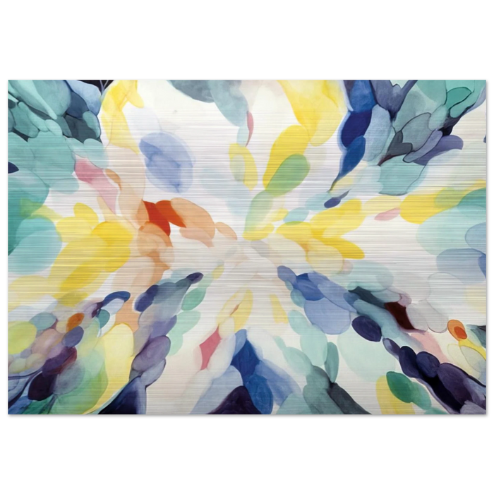 Printed on brushed silver aluminum for a textured, industrial look. Colors interact with the metallic surface for a unique, artistic effect. Ideal for abstract art, black-and-white photography, and modern spaces: